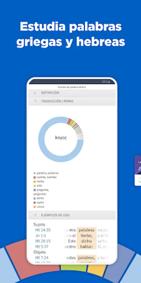 When you download the Logos application you will receive two versions in Spanish: Reina Valera Updated and the New Bible of the Americas. If you register, you will have access to the 1960 Reina Valera, the New American Bible, the Spurgeon Faith Checkbook devotional, the Treasury of Biblical Knowledge, the New American Bible study Bible notes, the Index of Latin American Bible Topics and other Bible study resources, so you can have a profitable study of the Word.