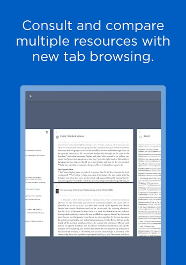 TABBED NAVIGATION: Open as many resources or bibles as you like and view them side by side.