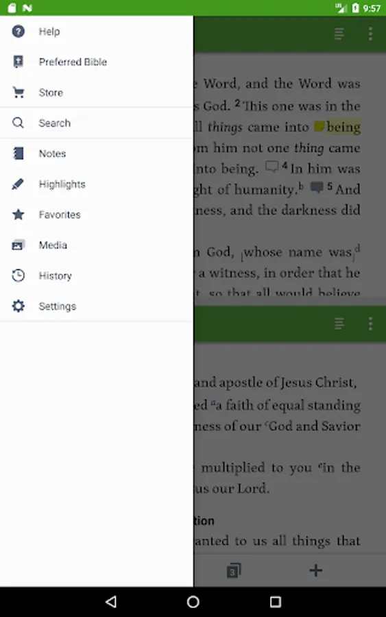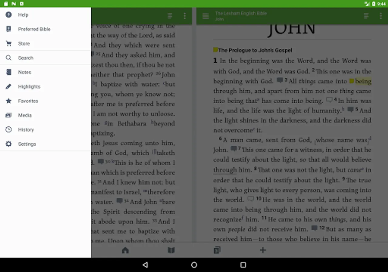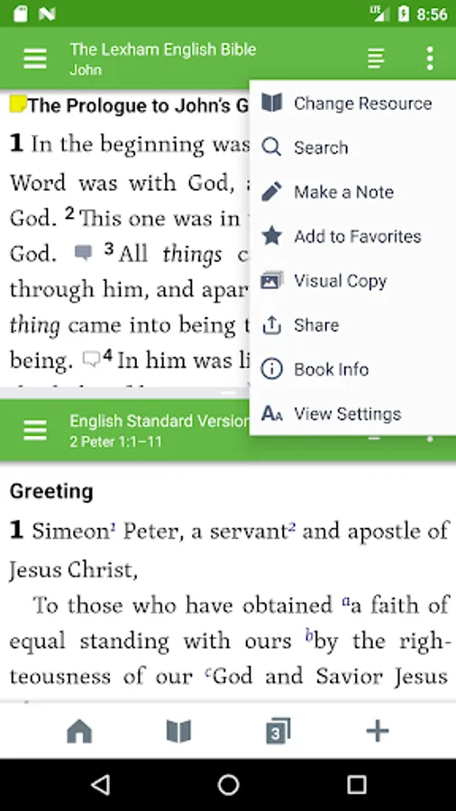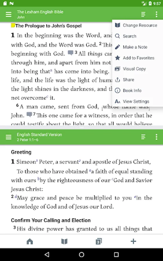 SPLIT SCREEN - Delve into any secondary resource side by side with your preferred Bible translation.