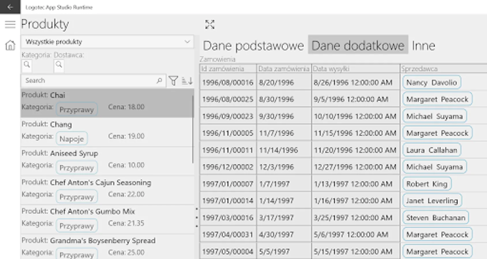 Northwind EN by Logotec App Studio is an application based on Microsoft sample Northwind database. It operates in the cloud and was developed in just three hours using App Studio Logotec - without programming.