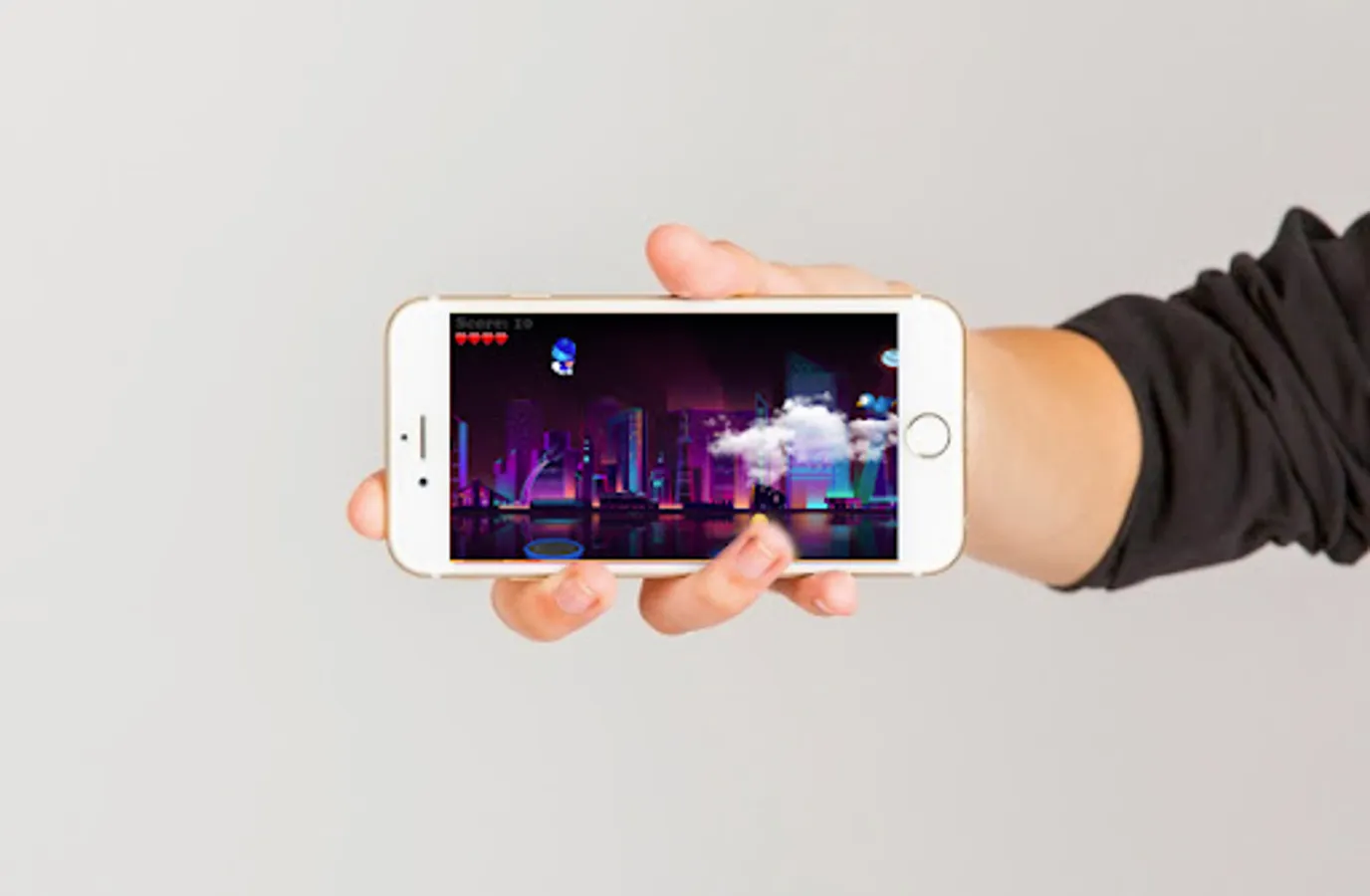 By pressing and holding the right or left part of the screen, you can move your character, jump on the trampolines and collect gold!