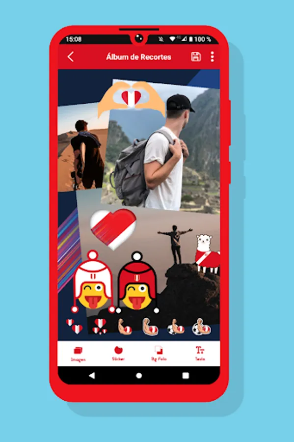 - Have fun editing your photos: with stickers of the flag of Peru, or make a collage with 2,3,5 ... 10 photos.