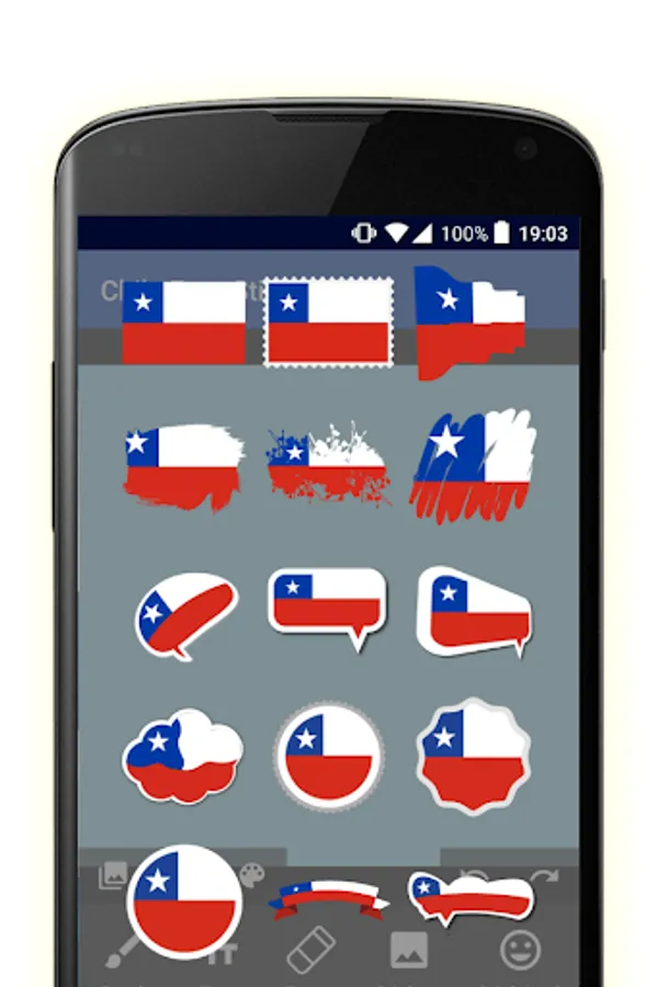 - Have fun editing your photos with stickers of the Chilean flag. In addition to the chile flag with the rectangular shape, you will have a library with butterfly stickers, stickers of hearts among others, all of them with the colors of Chile!