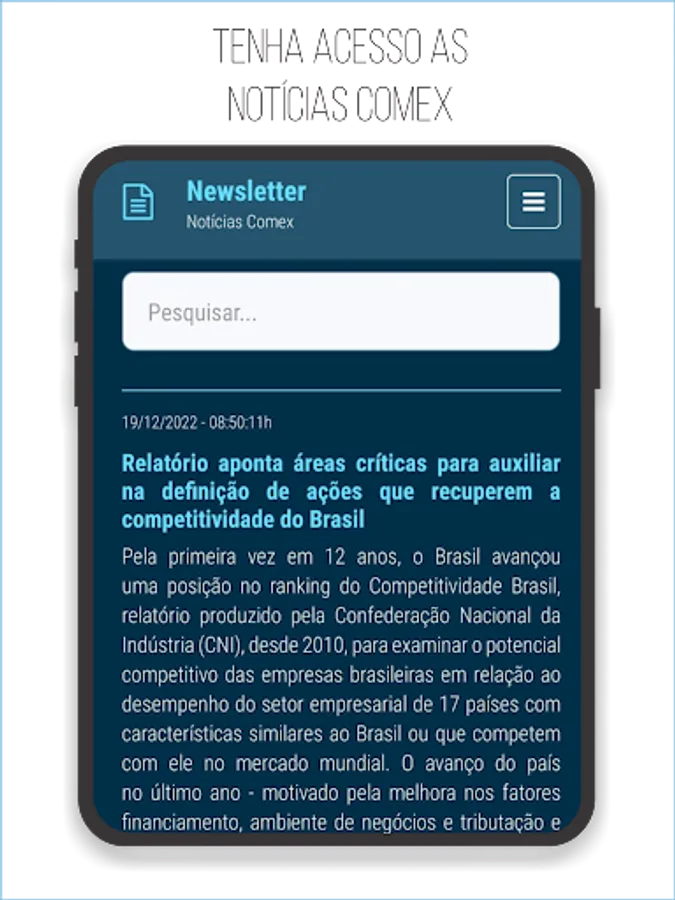 The Logtrade App was developed by the technology team of Logtrade Comex Logística Integrada with the purpose of bringing to the customer in real time the information of their internal customs clearance processes with total precision and also an easy and dynamic consultation of the Tracking of their load automatically directing to shipowners' websites.