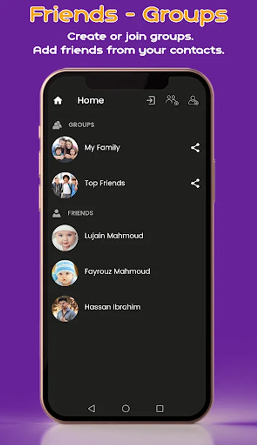• Add friends from contacts to send private photos.