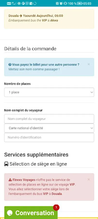 This application allows you to pay for your FINEXS Voyages bus tickets online and to go to the counter only for your boarding. You can also change or cancel your ticket online.