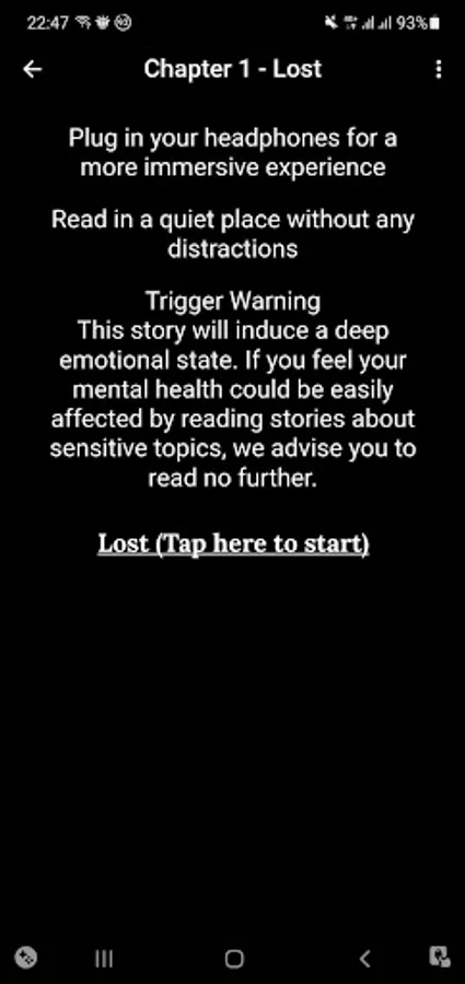 Note: This app focus on the introspective aspect of the interactive story rather than the gameplay aspect. The story is largely linear with minor maneuvers and most choices and input are for the user's self-reflection and experience. However, most chapters do have multiple endings.