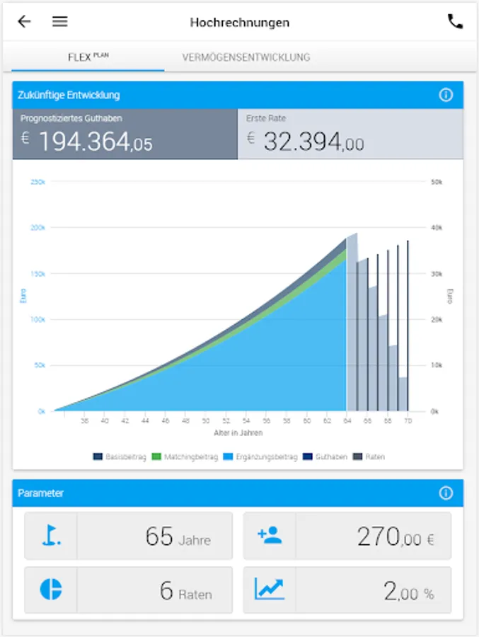 Keep track of your pension and their development in mind. Simulate your income in retirement, obtain current account statements and make active for your age before. The thyssenkrupp retirement app allows you to easily keep track of your pension schemes, and mobile around the clock.