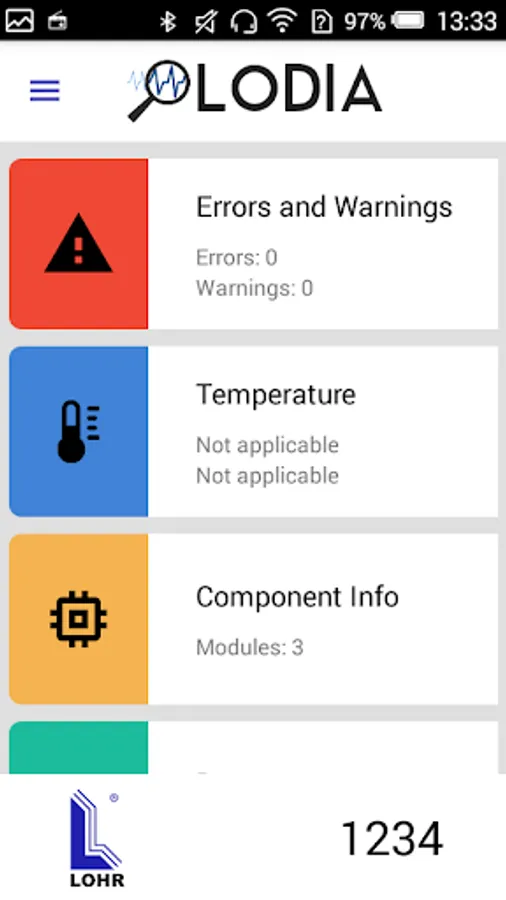 LODIA (LOHR Diagnostic App) is the application that allows access to maintenance data of vehicles equipped with LOHR electronic systems. Intended for use by maintenance areas, it applies to LOHR electronic products that have Bluetooth® communication. It allows simple and quick access to the status of the vehicle's electronics system, indicating the devices connected to the CAN communication network, in addition to providing real-time diagnosis of each system input and output.