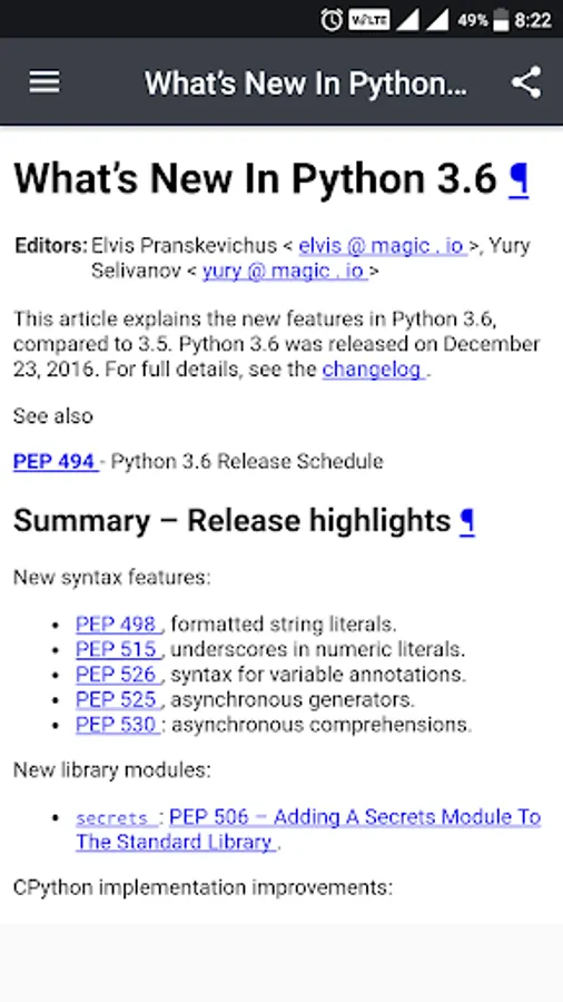 Python features a dynamic type system and automatic memory management. It supports multiple programming paradigms, including object-oriented, imperative, functional and procedural, and has a large and comprehensive standard library.