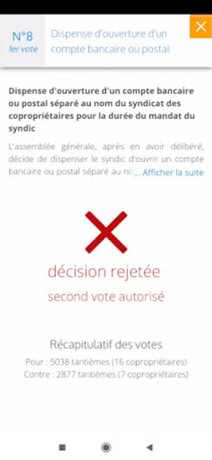 The deadlines for holding general meetings are therefore reduced as well, the purely technical part of the statement of votes being thus greatly optimized in order to leave more room for the legitimate explanations that each co-owner present is entitled to expect. Our latest satisfaction survey, which is also confirmed in the same proportions by the previous ones, shows that 96% of the co-owners who attended and responded to it, find the duration of the general meeting too long!