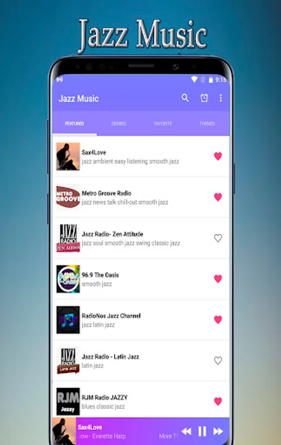 Discover our new application, we introduce you to Jazz Music. Download and tune in to the Jazz Music that you like in its different genres such as Jazz, Acid Jazz, Classic Jazz and Latin Jazz within a click and enjoy this radio application that, with its songs, will remind you of its greatest hits in history of Jazz.