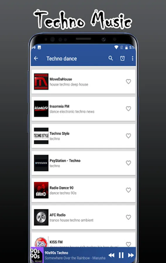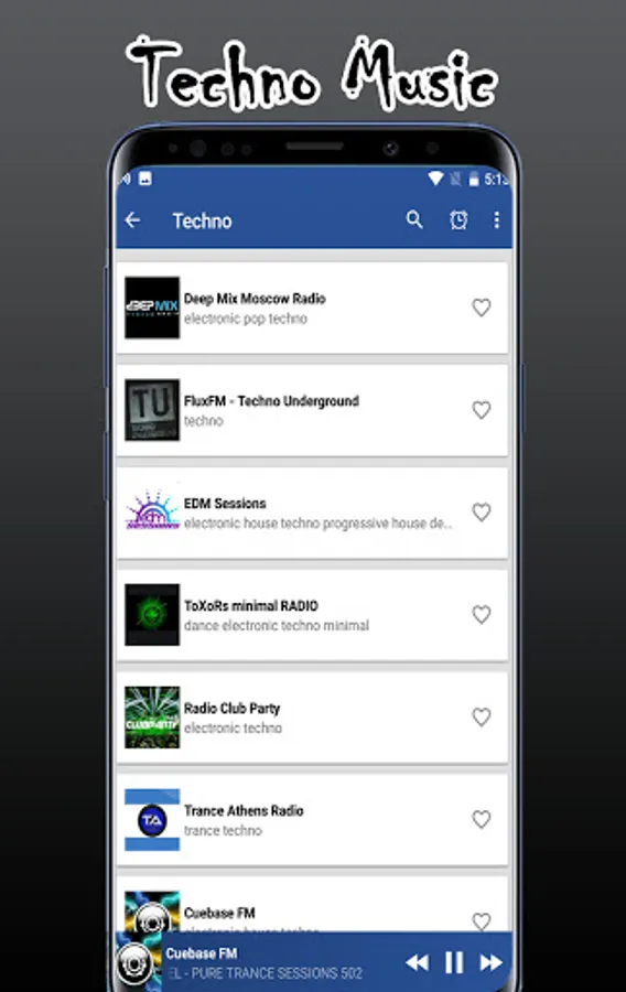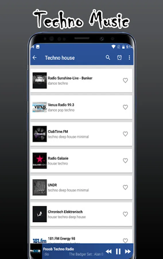 Find the best stations of this musical genre such as: Classic Techno, Techno Dance, Techno House and Techno Playlist.