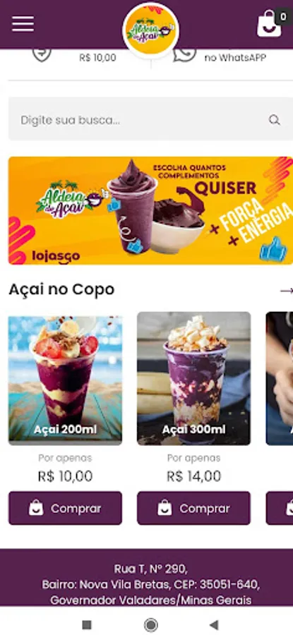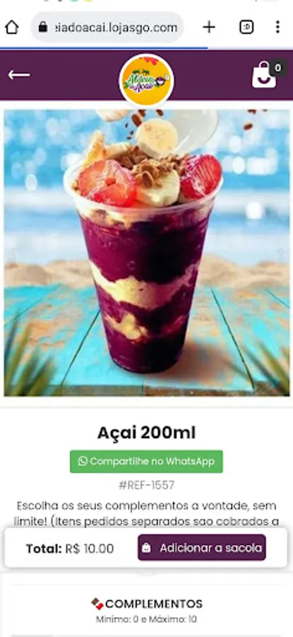 Creamy açaí without ice crystals, with unlimited complements.