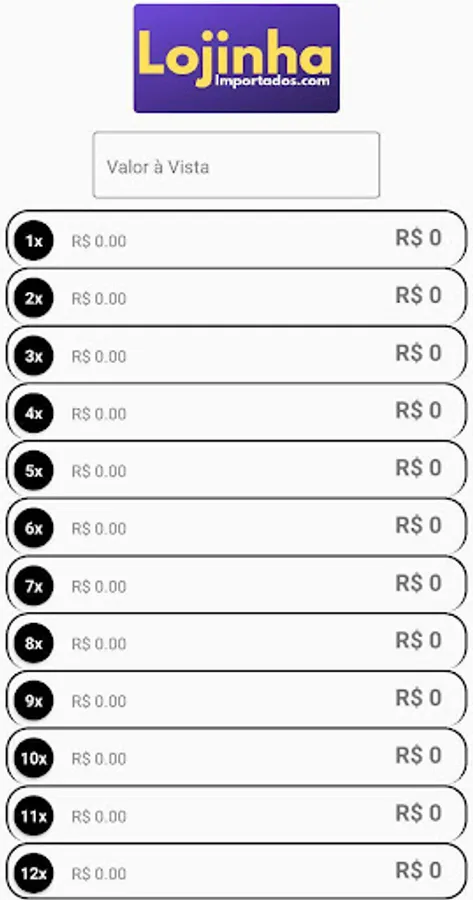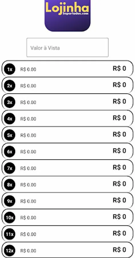 App from Lojinha Imported for information and rates of physical store credit cards.
