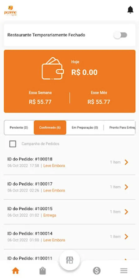 Aplicativo gestor de pedidos 2.0 para lojista da plataforma Pezinho Delivery.