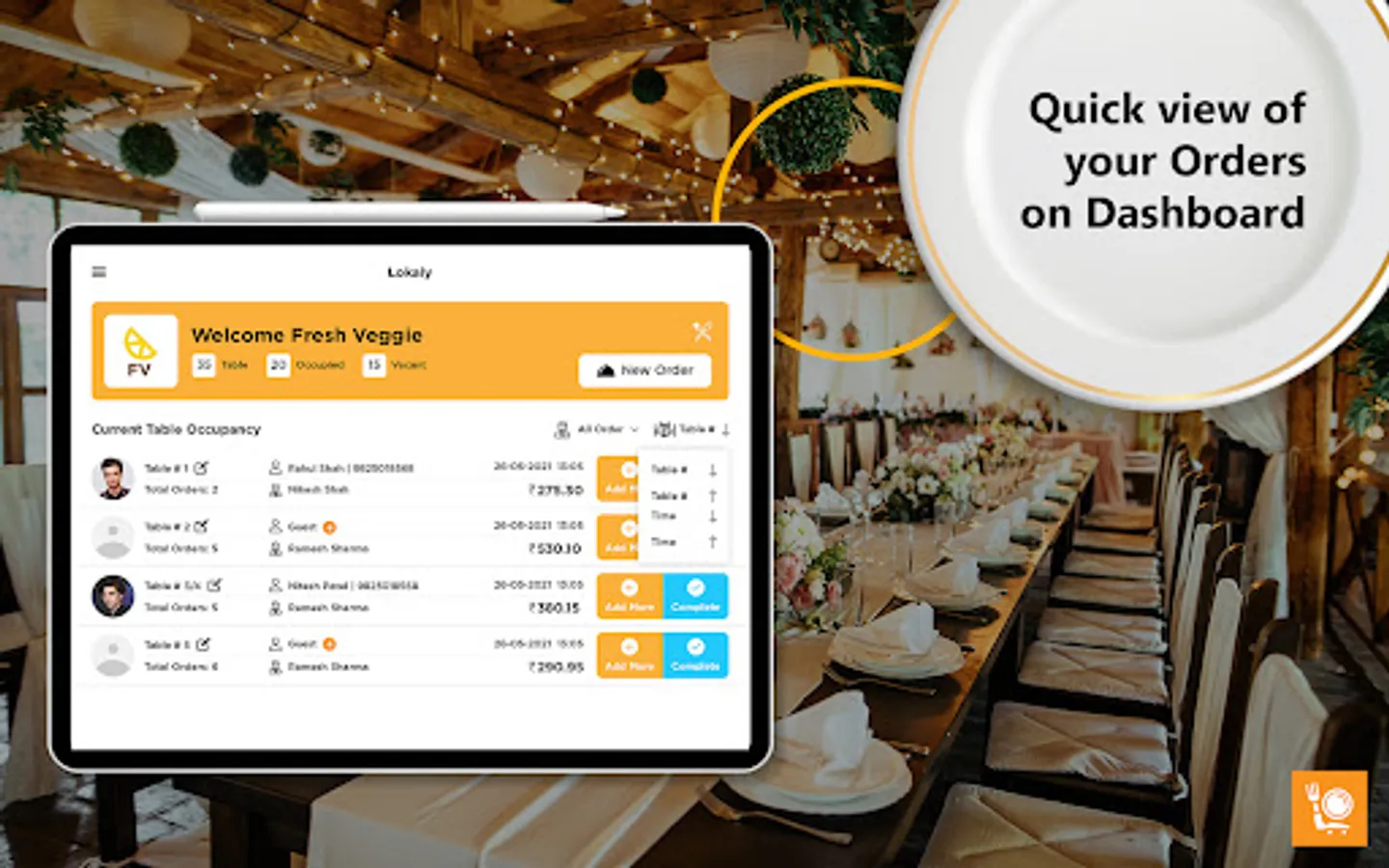 Lokaly Dine In Application allows Restaurant/ Eateries to manage the Orders digitally. The app is available for Captain and Kitchen. It allows for digital KOT (Kitchen Order Ticket) as well as printing the KOT. The order processing is seamlessly integrated with the Lokaly Customer App to allow the customer see their Order details review them as well. Application allows for various features like Guest or Existing Customer Ordering, Various Item View (List, Grid), Multiple Sub-Orders, Adding Notes, Adding Tip, Print JOT, Print Bill etc.
