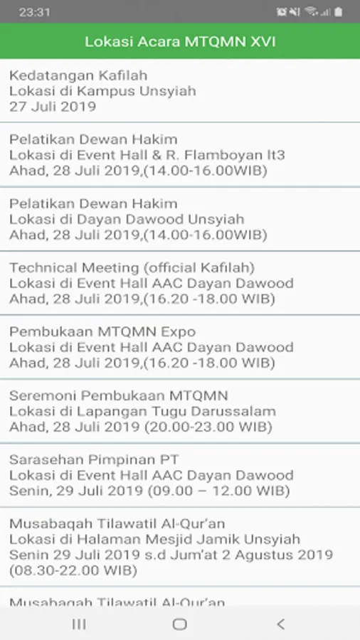 The location of XVI MTQMN is an application that provides the location of the XVI MTQMN 2019 event