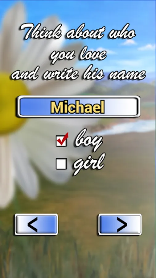 Love game for girls (and boys). The daisy will tell you whether he/she loves you... or not!