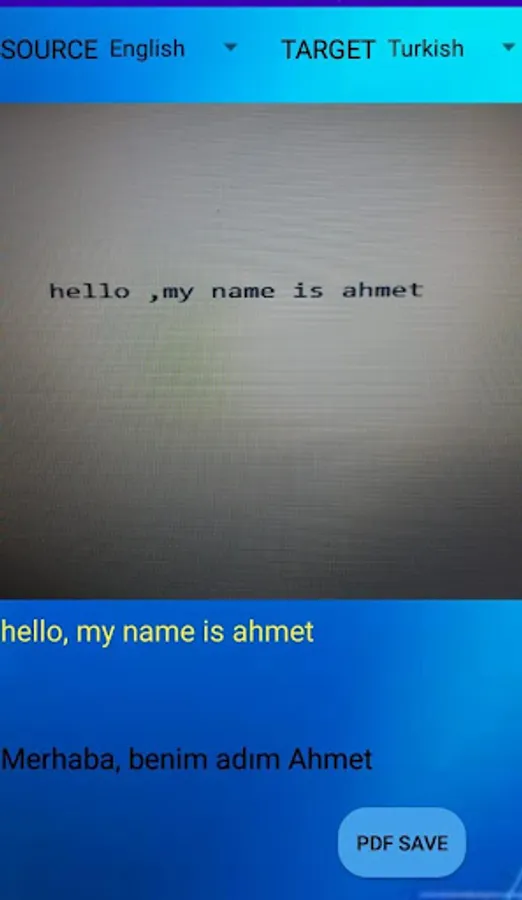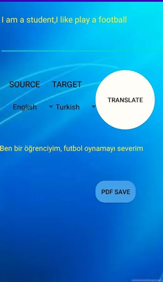 Text: instantly translates the text you have written into the language you want and saves it as PDF if you want.