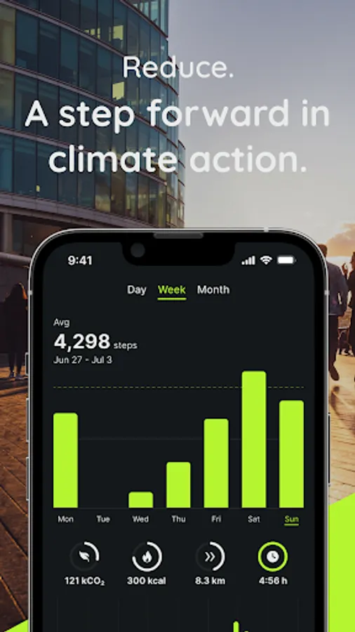 With its easy-to-use interface, analyze your walking habits in terms of distance, duration, and carbon reduction goals.