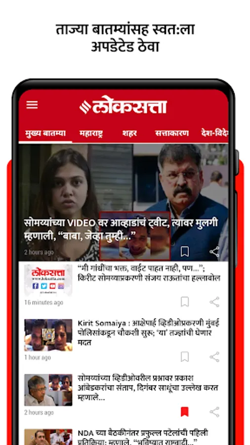 लोकसत्ता अॅपवर तुम्हाला मिळेल माहितीपूर्ण दृष्टिकोन आणि सखोल वार्तांकन! मराठीतील लोकसत्ता अॅपद्वारे तुम्ही ताज्या घडामोडी, सखोल वार्तांकन आणि विश्लेषण वाचू शकता. क्षणोक्षणीचे अपडेट्स, विचारांना चालना देणारे लेख आणि तुमच्या आवडीनुसार कंटेण्ट निवडण्याची सुविधा मिळवण्यासाठी लगेच लोकसत्ता अॅप डाऊनलोड करा.