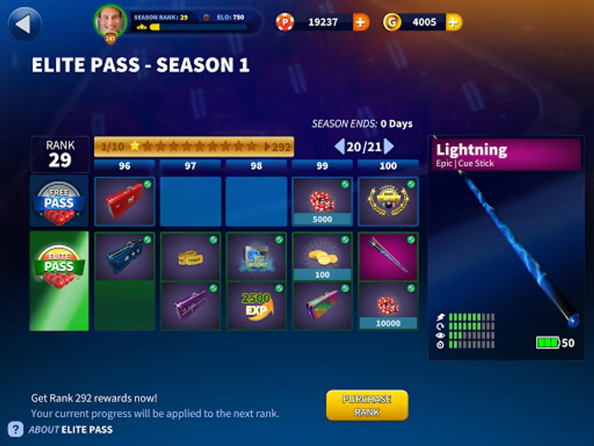 - Show off your skills in style: customize your cue sticks and outfits