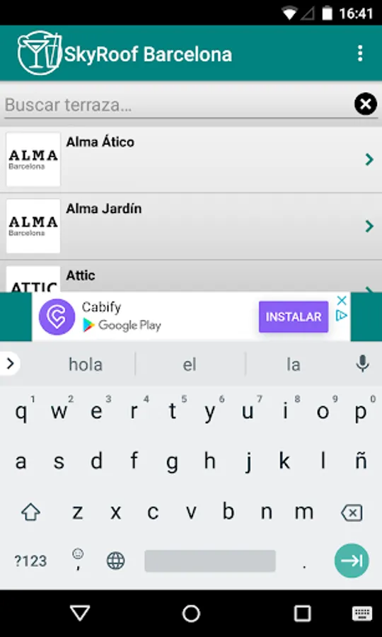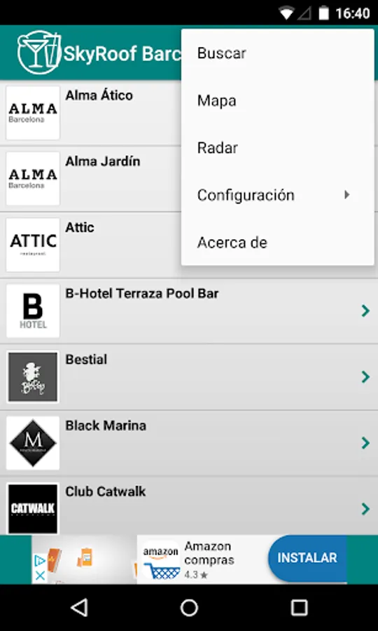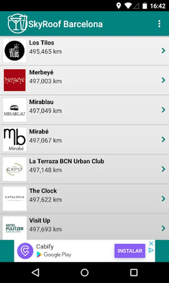 • Radar: by geolocation orders the rooftop bars by order of proximity