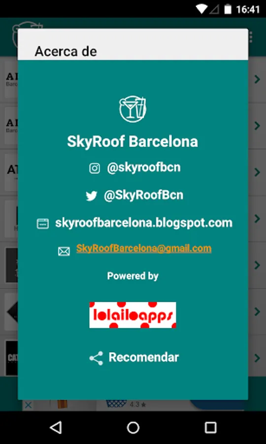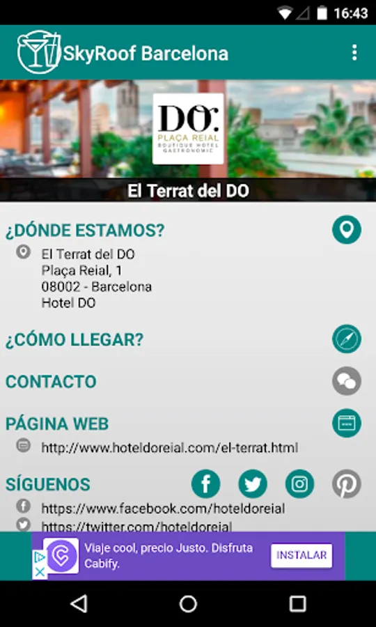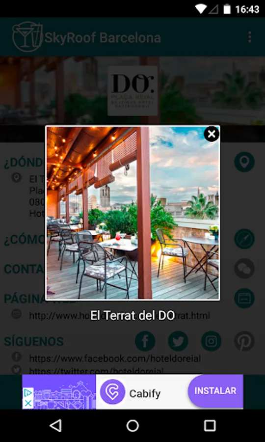 SkyRoof Barcelona gives you quick and easy all the information you need from the best rooftop bars and bar terraces in Barcelona: where they are, how to get, how to contact them, their profiles in different social networks. You can also sort by proximity to know which are closer.