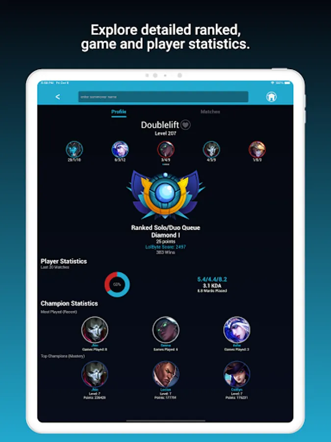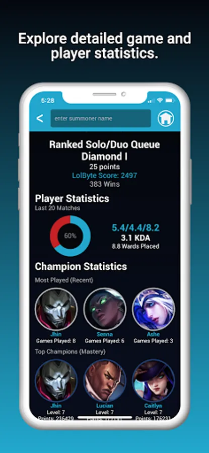 LolByte unlocks the power of quickly viewing League player, ranked and match data in the palm of your hand with an intuitive, easy-to-use interface.