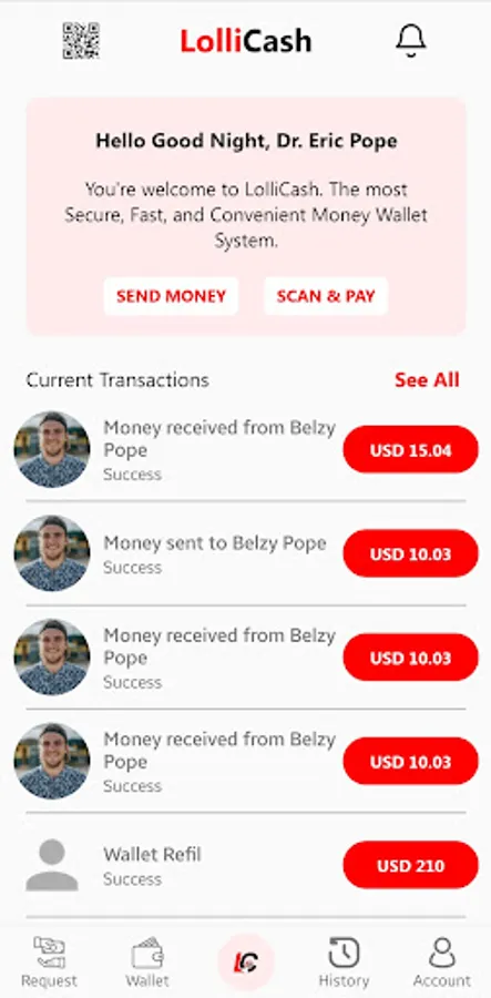 LolliCash is a secure Wallet system to send and receive money transfer payments. With a vision-driven goal to make both domestic and international money transfers easier and more convenient worldwide. The Profile AI QR functionality makes it easier for individuals and small-scale businesses to efficiently scan and pay for transactions effortlessly. Now it is easier to send and receive money from international countries without depending on Mobile Money or issues from other fintech services. LolliCash leverages its modern, mobile, and API-driven platform and collaborates with the world's leading brands to serve consumers through the LolliCash Wallet system, its direct-to-consumer digital business, and its global retail network.