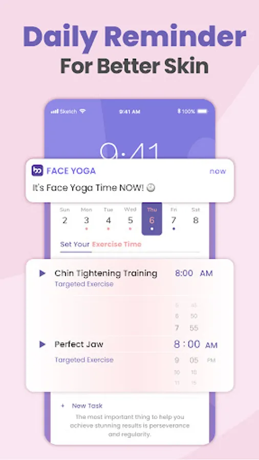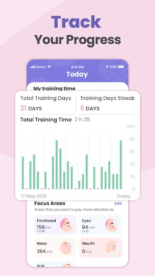 - FaceYogi's incentive system utilizes a visual progress record, keeping you motivated and on schedule.