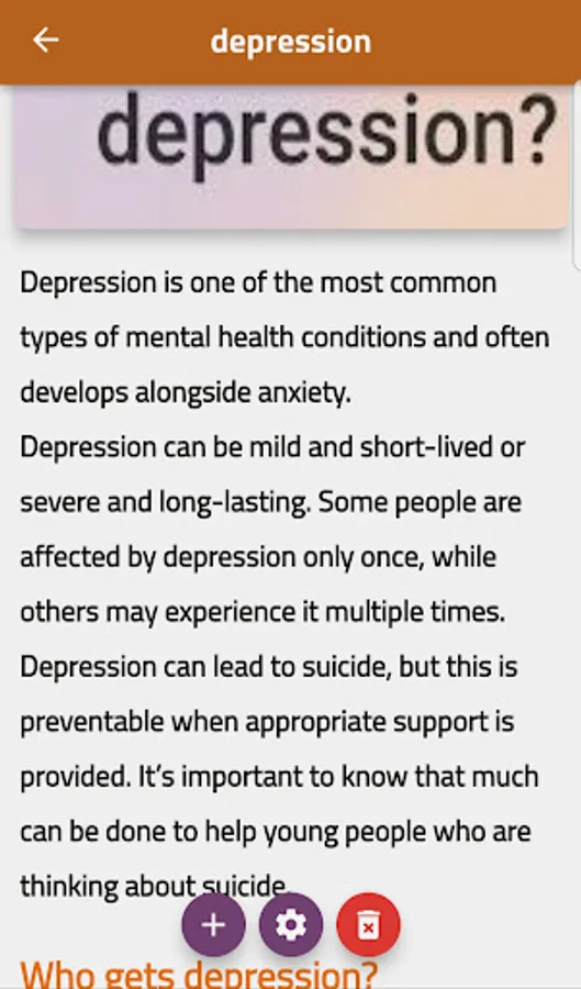 Welcome to Depression app. Depression (major depressive disorder) is a common and serious medical illness that negatively affects how you feel, the way you think and how you act. Fortunately, it is also treatable. Depression causes feelings of sadness and/or a loss of interest in activities you once enjoyed. It can lead to a variety of emotional and physical problems and can decrease your ability to function at work and at home.