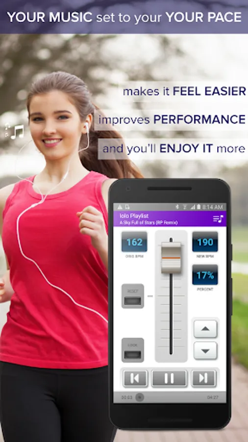Tempo Magic adjusts the music straight from your phone - no lengthy uploads or importing required. Just pick your playlist and go.