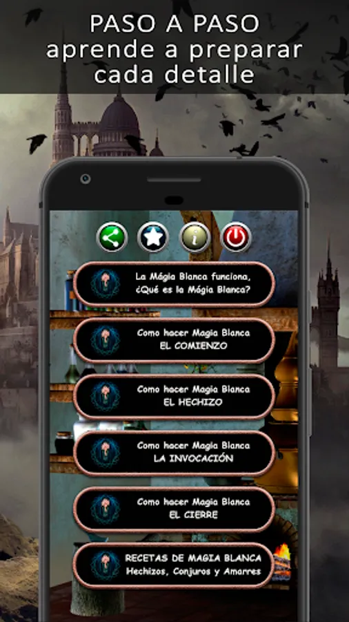 In this free application of White Magic you will find in ordered sections what steps you must follow to carry out all sorts of spells, spells and moorings of Royal White Magic.