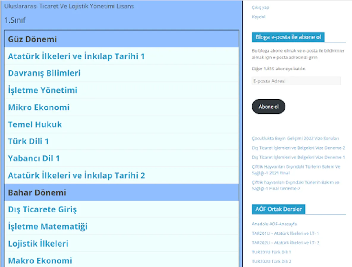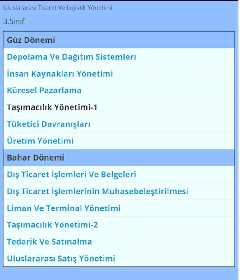 Auzef International Trade and Logistics Management Undergraduate Department questions, practice exams, subject questions are all in this application