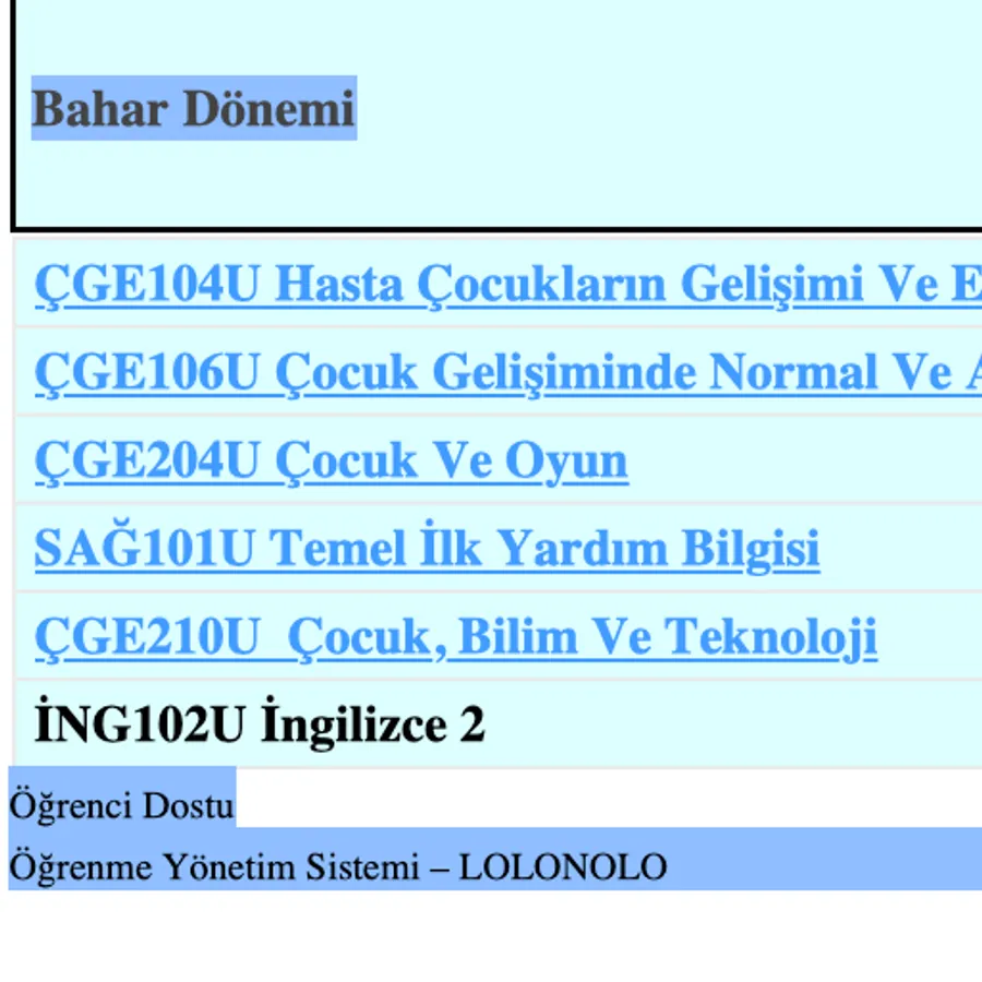 ÇGE202U Developmental Diagnosis and Evaluation Methods