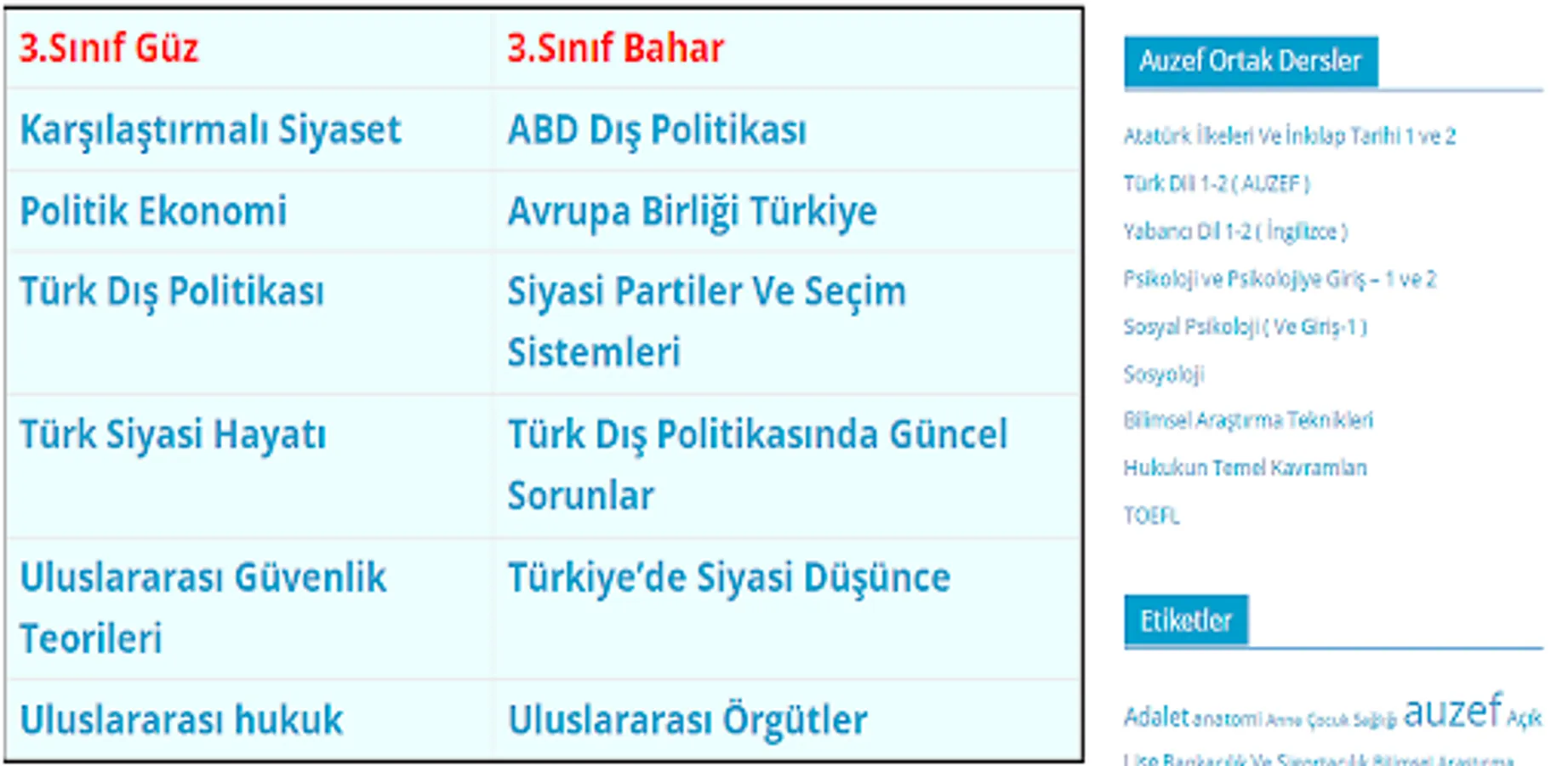 Auzef Political Science and International Relations undergraduate questions, practice exams, subject questions and textbook links