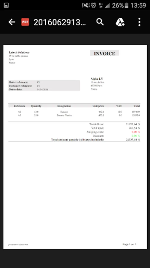 - Generate invoices with signature and stamp of the company from a customer order.