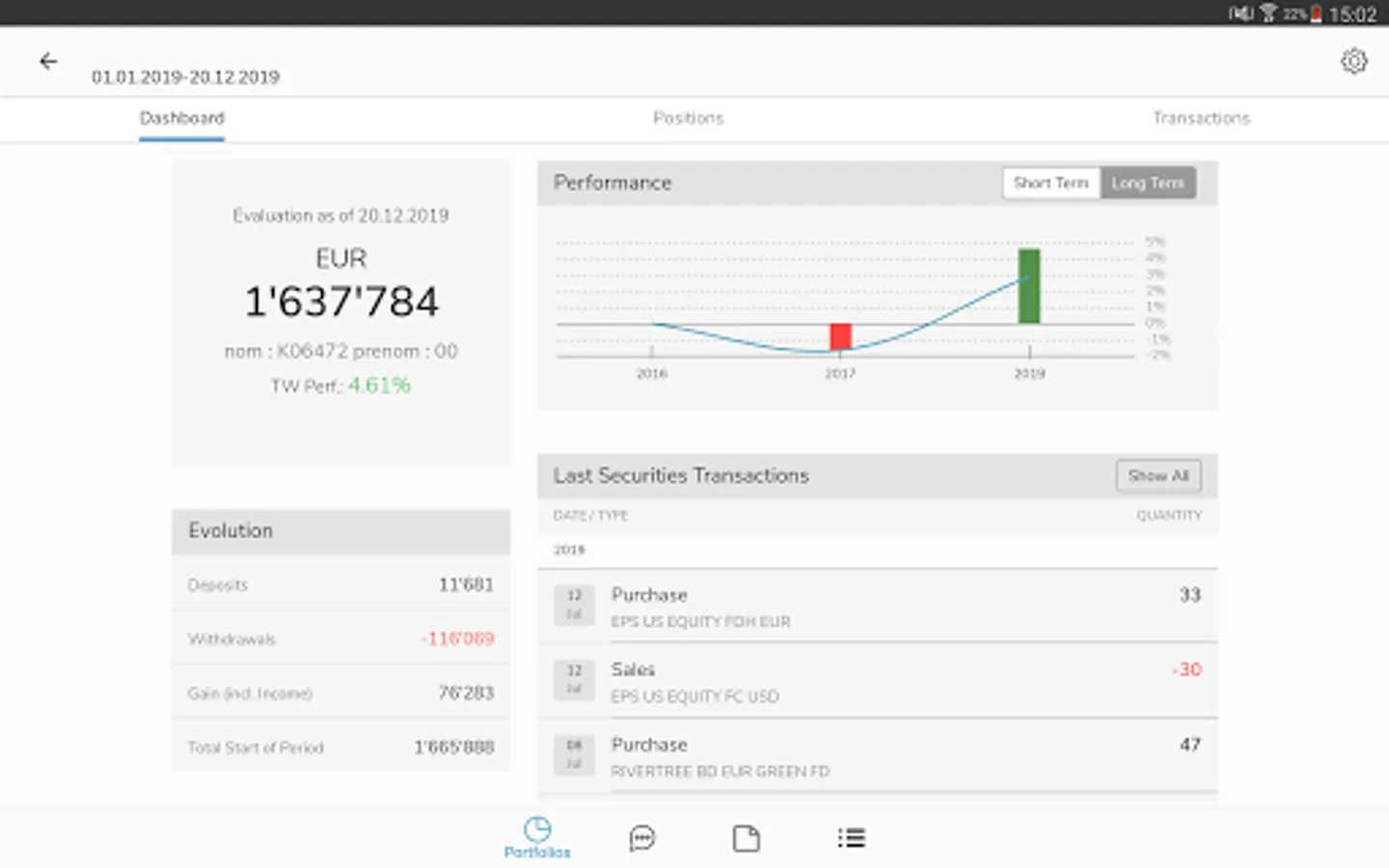 Thanks to a secure but simple access, the application provides clients with the following features: