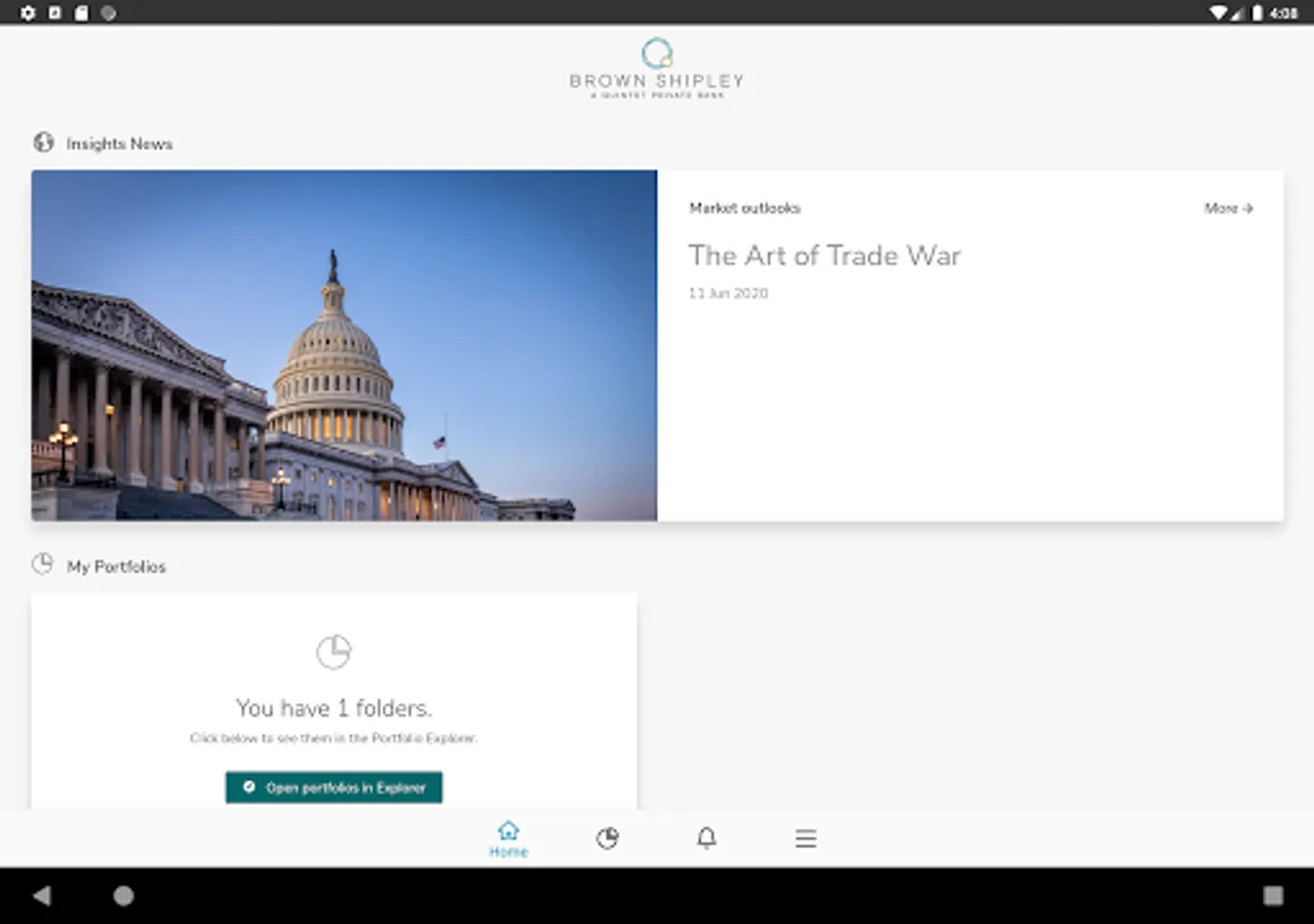 This is the new application that allows Brown Shipley’s clients to access their portfolios.