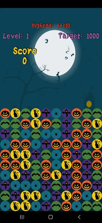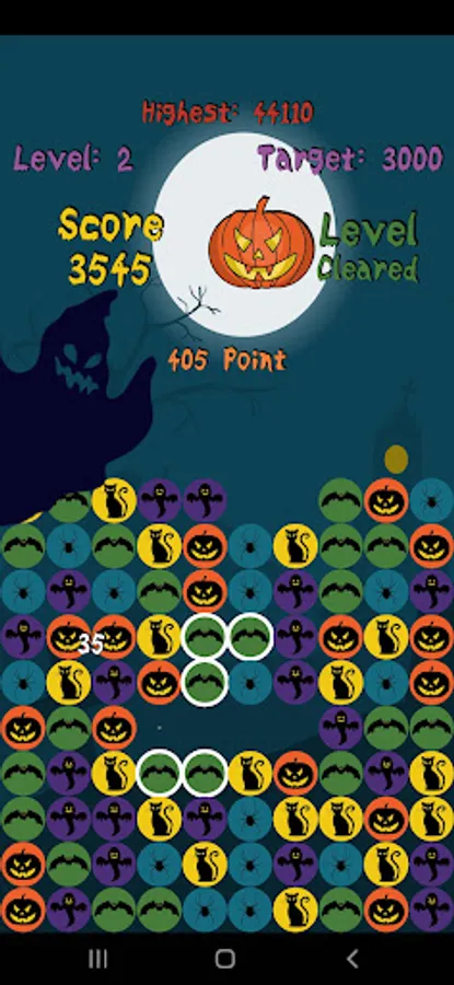 Increase your point by popping the coins group. More coins you can group the more point you will get. Try to call the ghost, bats and the Halloween witch. When you clear the target score then a Halloween pumpkin will appear.
