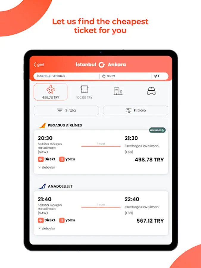 Lomio’nun kullanıcı dostu arayüzü sizi yormadan seyahatinizi planlamanıza yardımcı olacak. Gidiş ve varış noktasını seçtikten sonra yapmanız gereken tek şey ulaşım aracınızı seçmek! Size özel avantajlarla varış noktanıza ulaşmak lomio sayesinde daha da kolay!