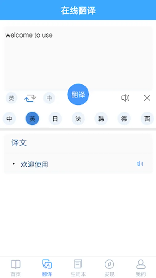 2. Support Chinese. English. Japanese. Korean. French. German. Spanish online translation and pronunciation