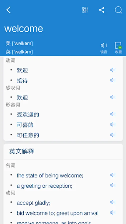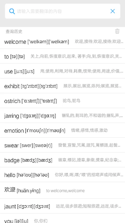 The dictionary supports both offline and online translation, automatic retrieval of Chinese and English input, easy to use, support Chinese. English. Japanese. Korean. French. German. Spanish online translation and pronunciation, support English online listening learning