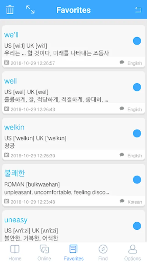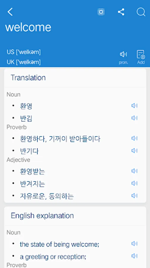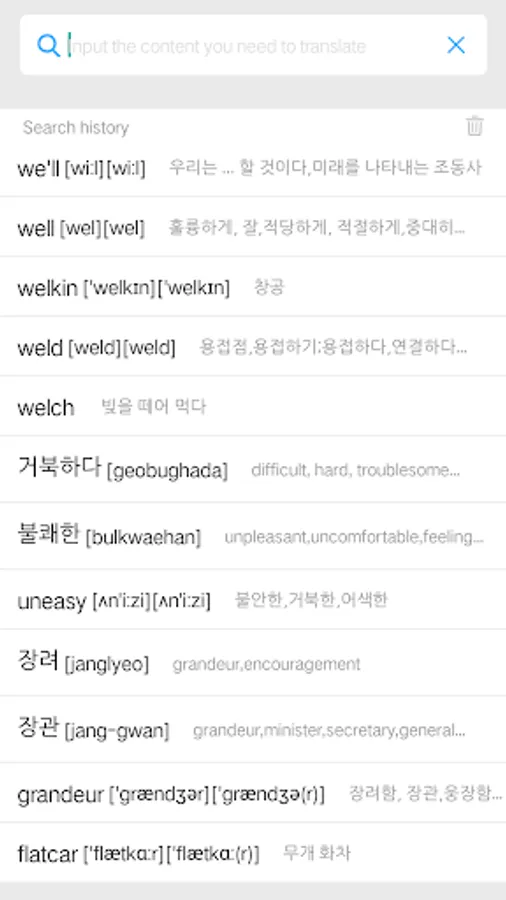 2. Support Chinese. English. Japanese. Korean. French. German. Spanish online translation and pronunciation