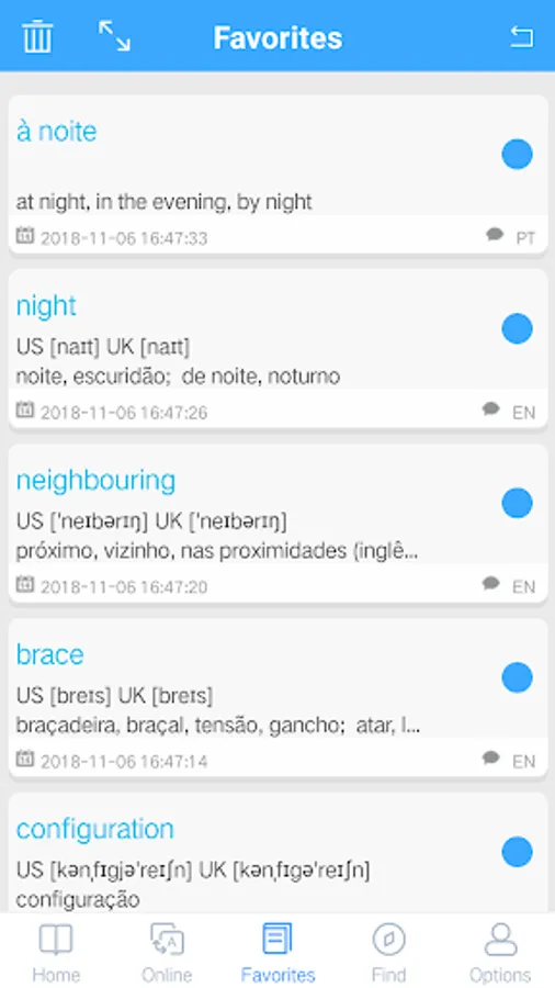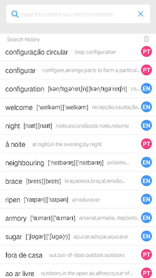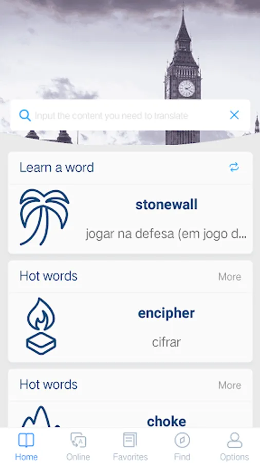 The dictionary supports both offline and online translation, automatic retrieval of Chinese and English input, easy to use, support Chinese. English. Japanese. Korean. French. German. Portuguese online translation and pronunciation, support English online listening learning