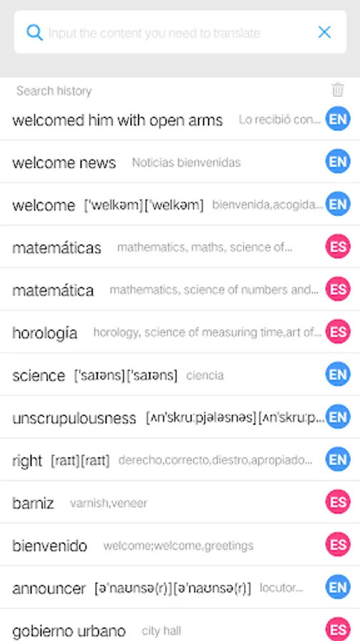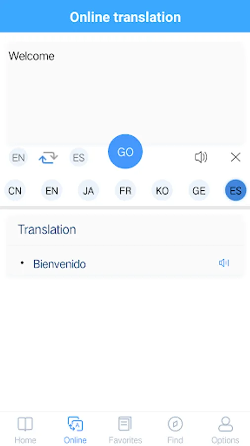 2. Support Chinese. English. Japanese. Korean. French. German. Spanish online translation and pronunciation