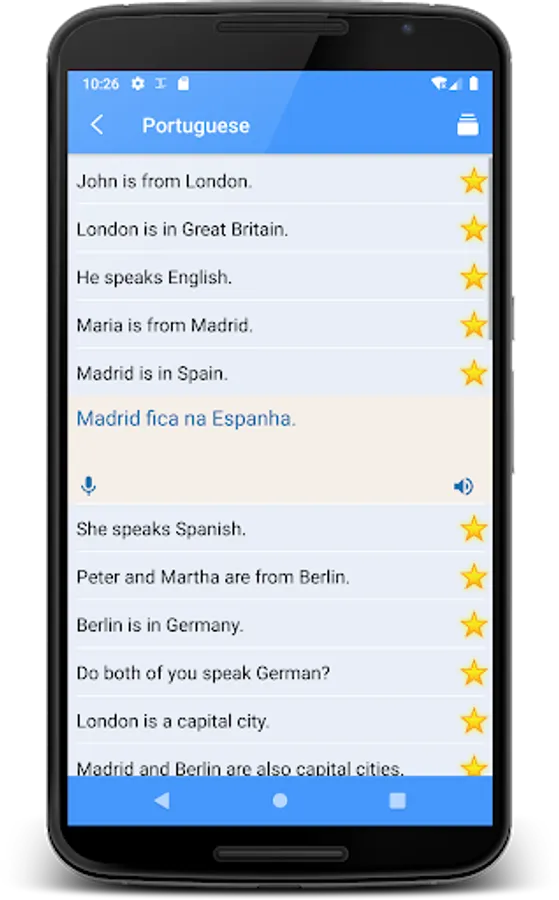 3. Support recording function, convenient for users to compare learning, To improve Portuguese speaking and Portuguese listening