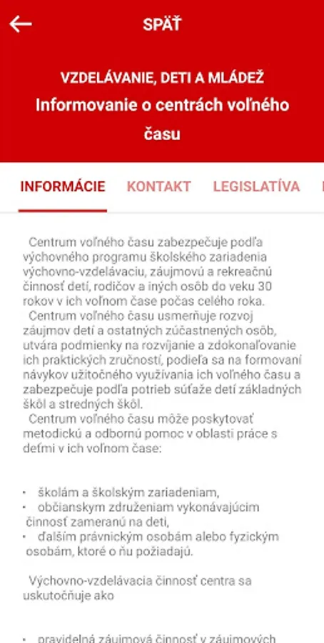 8 - You will see a detail of the service, where you can switch between the tabs Information, Contact, Legislation, Fees, Web (after selection, the detail of the service opens on the website)